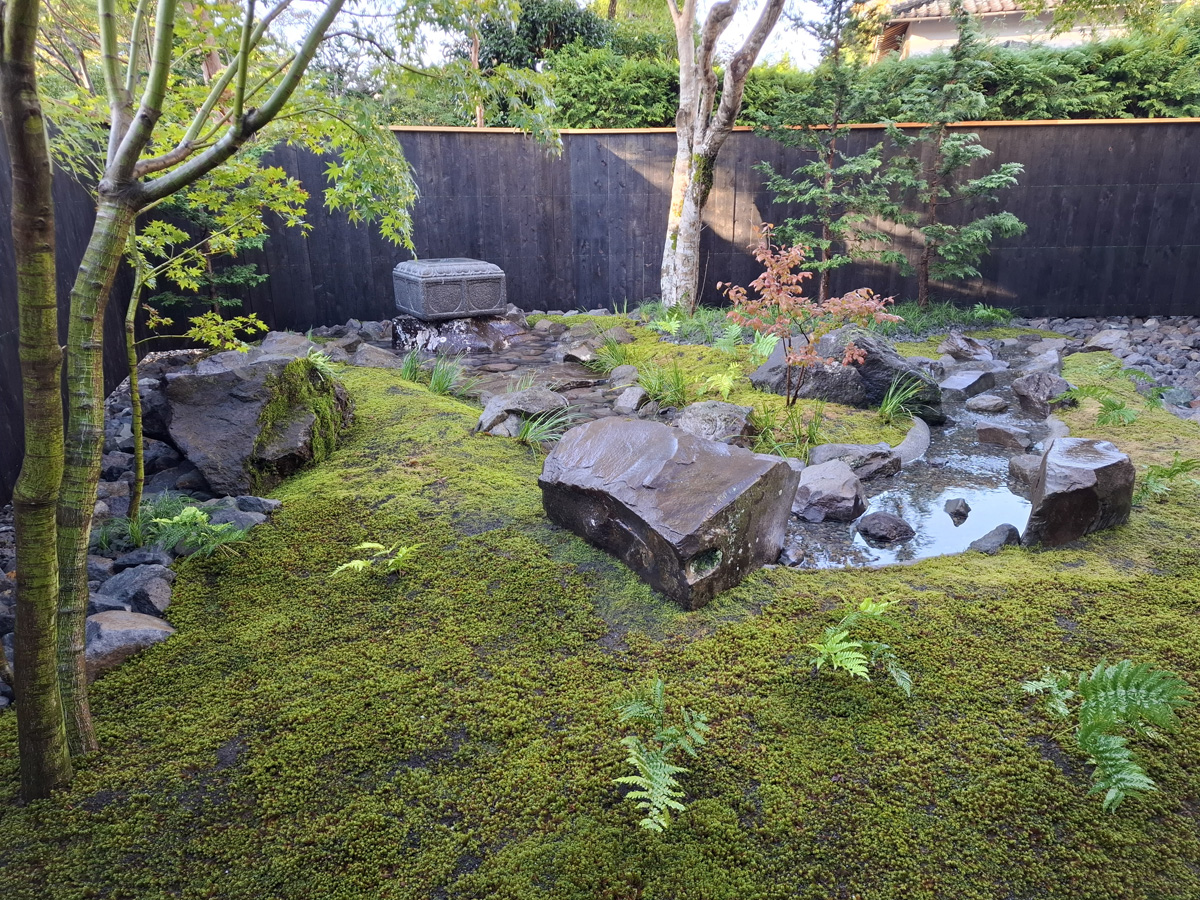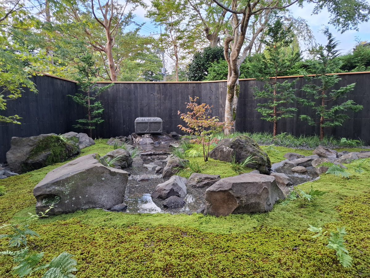 箱根とうふ茶屋 八十八 箱根仙石原に新しくオープンされたお宿、よいな様の前庭。 京町家風の建物の雰囲気に合わせて、涼しげな瑞々しい見映えを意識しております。 1日1組限定の、特別なゲストをお迎えするに相応しい形に仕上がりました。
